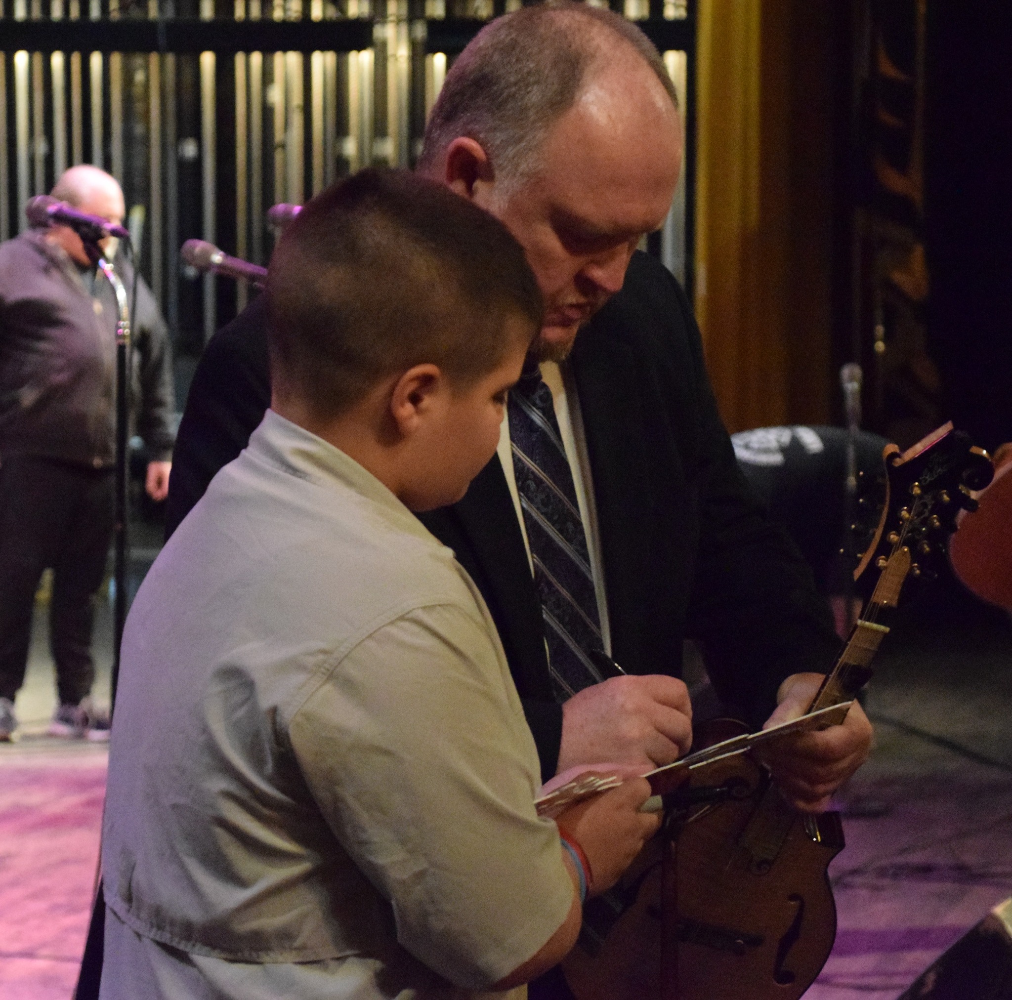 Jeff Tolbert signs memorabilia for a young fan after Primitive Quartet sang at Ashland, Ky. on April 1.